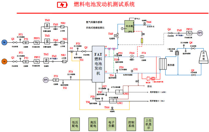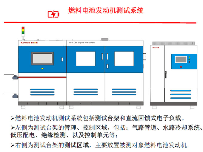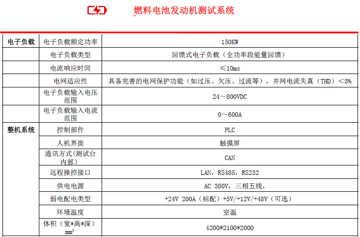● 燃料電池發(fā)動機(jī)測試系統(tǒng)包括測試臺架和直流回饋式電子負(fù)載。