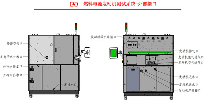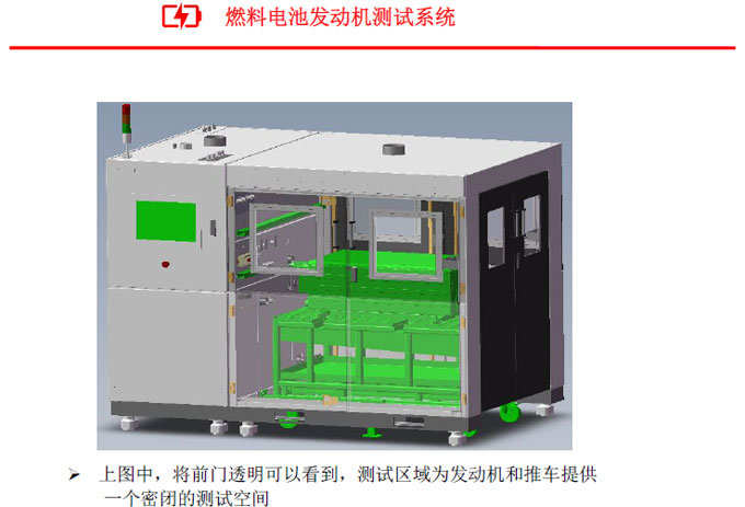 ● 右側(cè)為測試臺架的測試區(qū)域,主要放置被測對象燃料電池發(fā)動機(jī).
